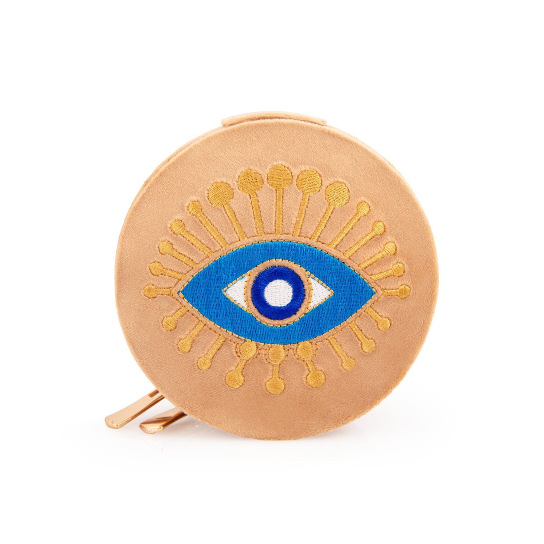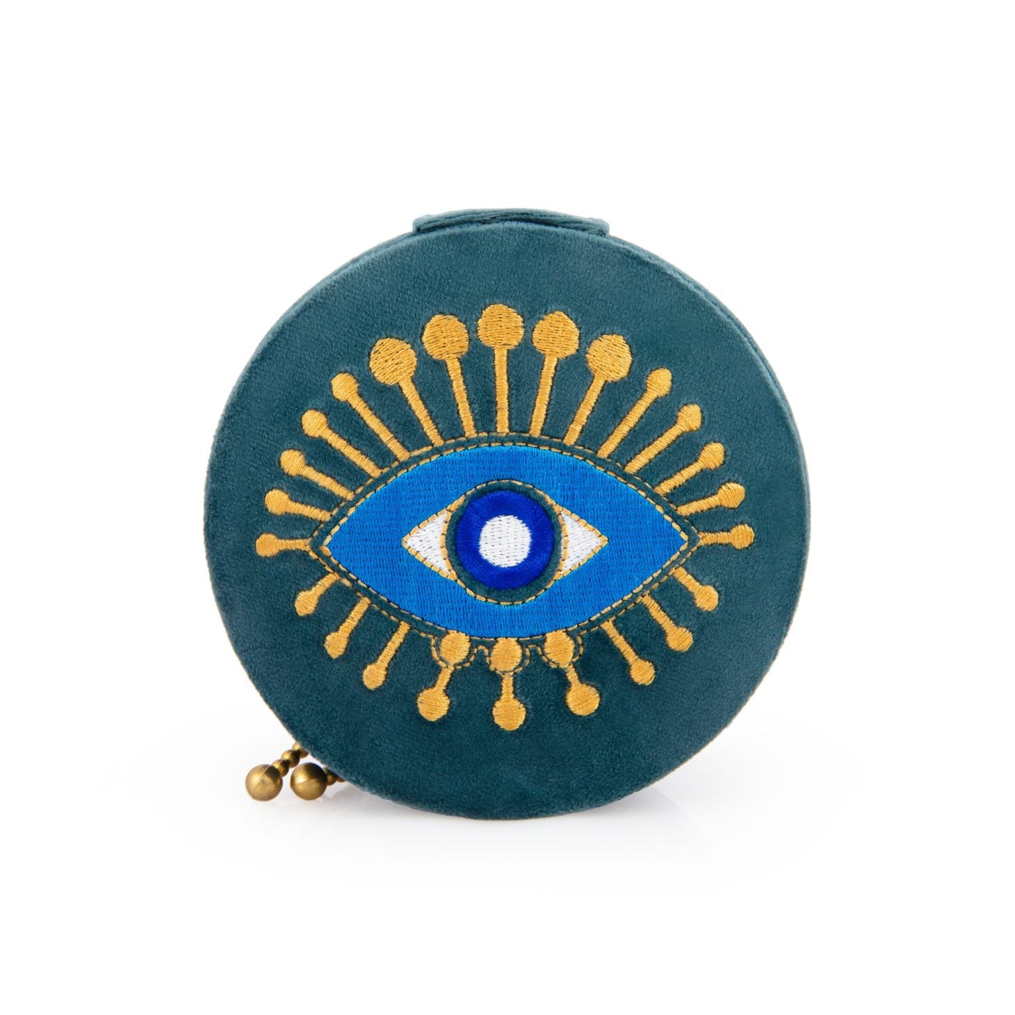 Our signature Rebel Eye Pendant inspires this design. Furthermore, the box features delicate, intricate embroidery representing protection and awareness. It’s more than just storage; consequently, it becomes a statement piece for your dresser.